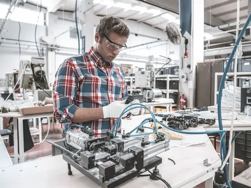 Mechatronic engineers build complex mechatronic systems from mechanical, electrical and electronic components, e.g. robots for industrial production. They are involved in their project from start to finish; e.g. they manufacture the individual components, assemble them into systems and equipment and then commission them.