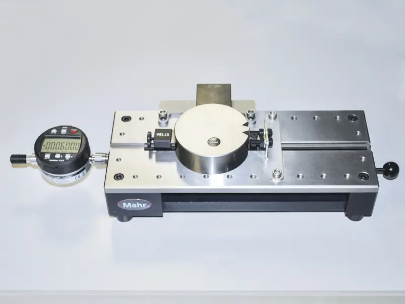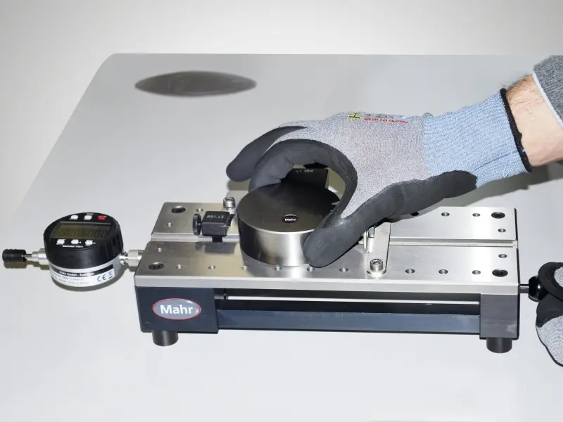La precisión y la repetibilidad se consiguen gracias a la superficie de referencia de la mesa, así como a la fuerza de medición constante y al palpador inductivo de precisión o a un reloj comparador.