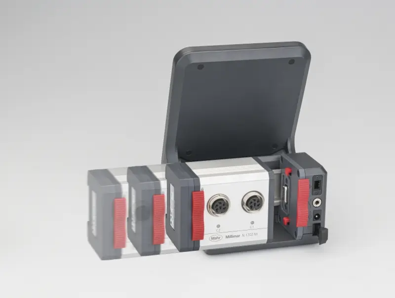 Avec le nouveau Millimar C 1202, vous bénéficiez de la dernière génération d'appareils compacts multicanaux pour la mesure de longueur. Grâce à ses caractéristiques d'équipement bien pensées, comme l'écran inclinable pour la sécurité des relevés, le guidage par menu et la représentation modifiable des valeurs de mesure, il offre un niveau exceptionnel d'ergonomie et de simplicité d'utilisation. Si vous l'associez à un module aisément interchangeable de la gamme N 1700, vous disposez d'un appareil de mesure parfaitement adapté à votre type de mesure. Doté de nombreuses fonctionnalités, le C 1202 est un dispositif universel : vous pouvez effectuer une grande variété de mesures, par exemple statiques ou dynamiques, mais aussi des calculs de cône. De plus, selon le module, les palpeurs de mesure d'autres fabricants sont compatibles, ce qui permet de réduire vos coûts.