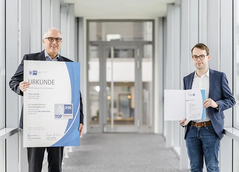 Mahr accorde une importance capitale à la qualité de la formation de ses jeunes recrues. C’est pourquoi cette entreprise de tradition basée à Göttingen a décidé en 2017 de demander le label « TOP Ausbildung » (formation TOP) de la Chambre de commerce et d'industrie de Hanovre. Label obtenu haut la main : depuis 2017, Mahr peut afficher cette certification, gage de la qualité du recrutement et de la formation.